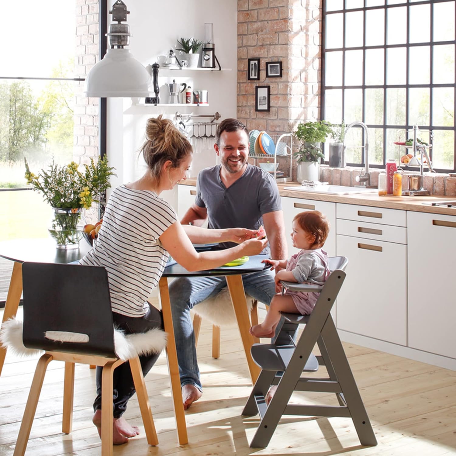 Dieser stabile Hochstuhl aus Holz ist für den täglichen Einsatz im Haushalt konzipiert und unterstützt eine ergonomische Sitzhaltung für Kinder ab dem Sitzalter.