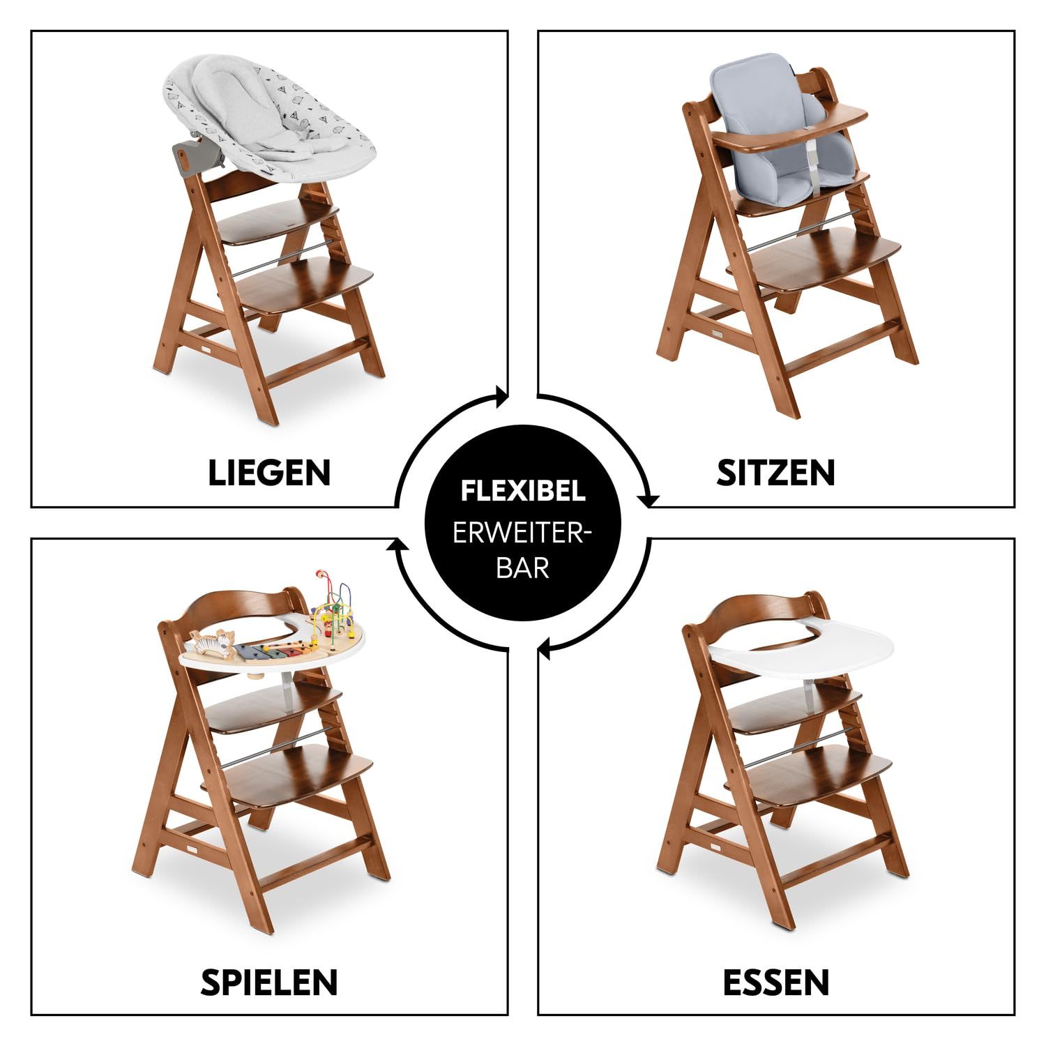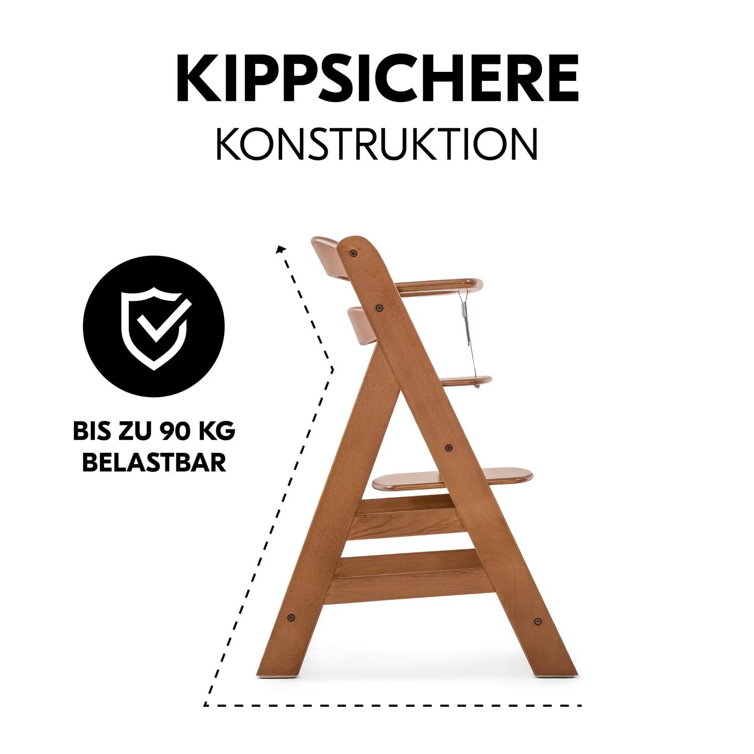 Dieser stabile Hochstuhl aus Holz ist für den täglichen Einsatz im Haushalt konzipiert und unterstützt eine ergonomische Sitzhaltung für Kinder ab dem Sitzalter.